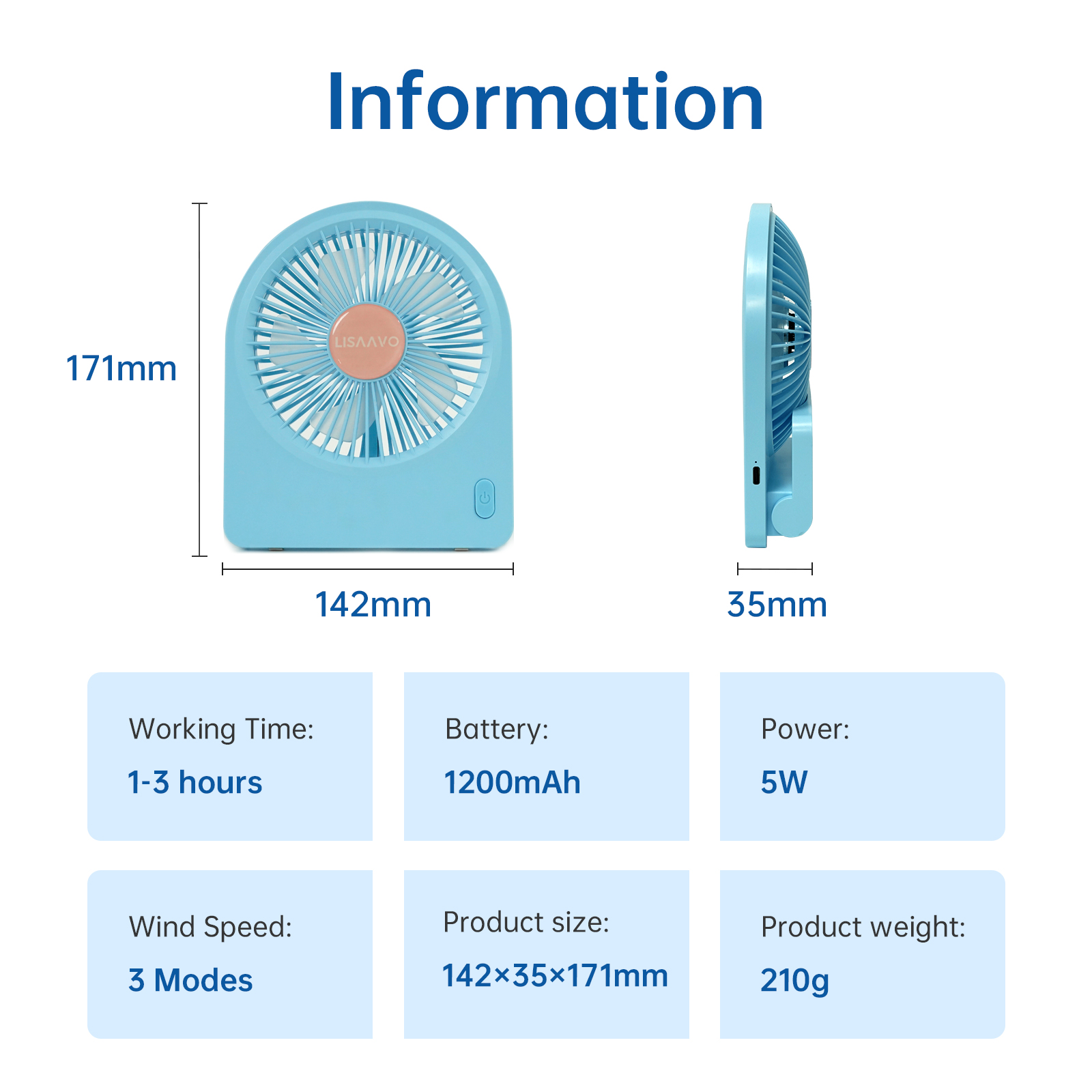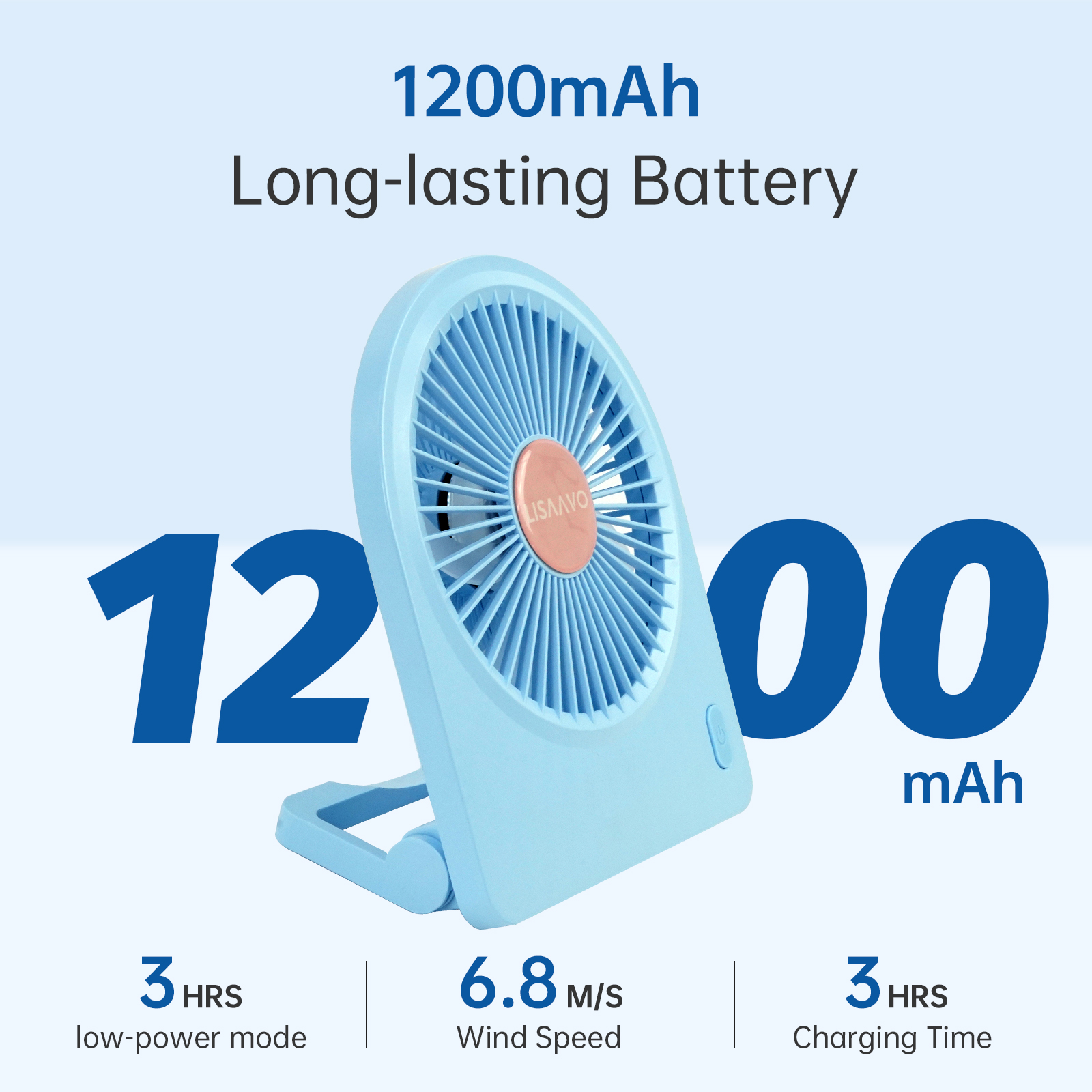 Equipped with Type-C charging, the Lisaavo ST-F011 charges efficiently in approximately 2.5–3 hours. The 1200mAh battery provides hours of portable cooling, making this portable cooling fan ideal for use at home, in the office, or while traveling.