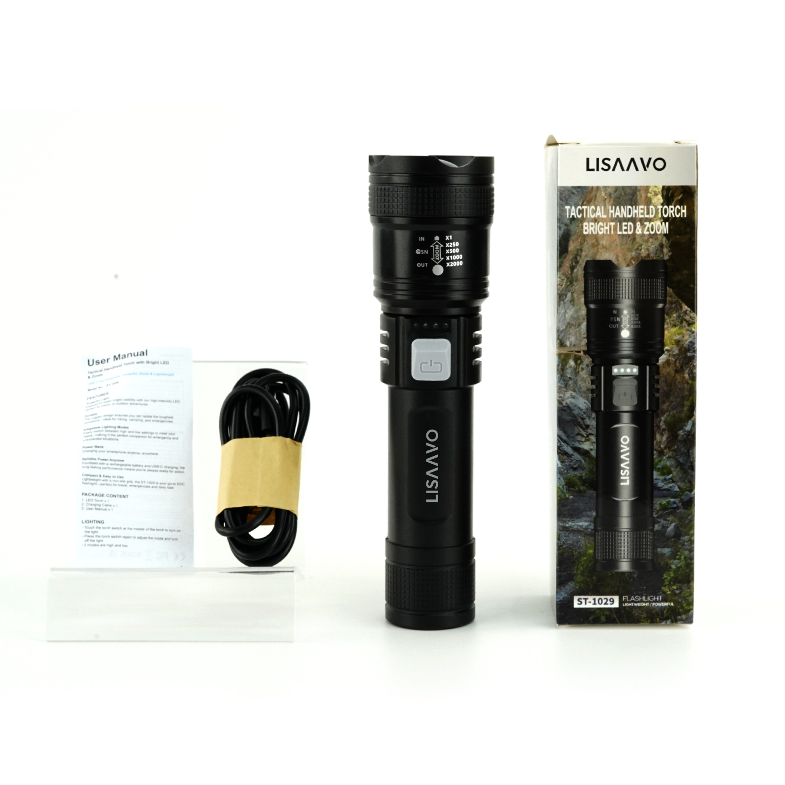 Model:Lisaavo ST-1029 Tactical Handheld Torch | Super Bright Rechargeable LED Flashlight